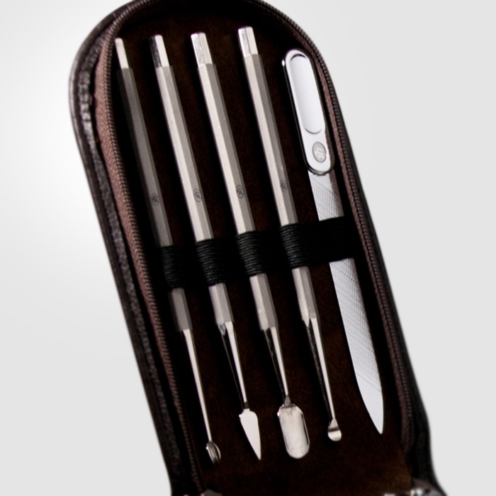| 고급귀이개 Stainless steel로 제작되어 피부에 자극이 없습니다. 예민한 귓 속에 안전한 사용이 가능하도록 매끄러운 라운딩 처리를 하였습니다. 원통일체형 가공으로 내구성이 향상되었으며, 격자무늬 세공으로 화려함을 더했습니다. |
